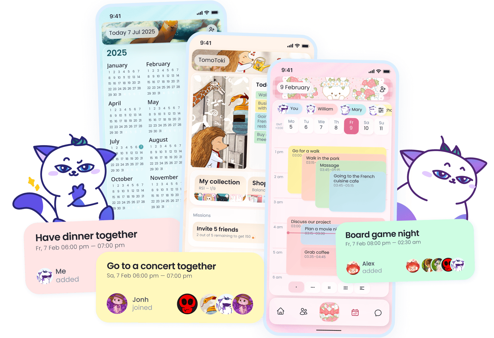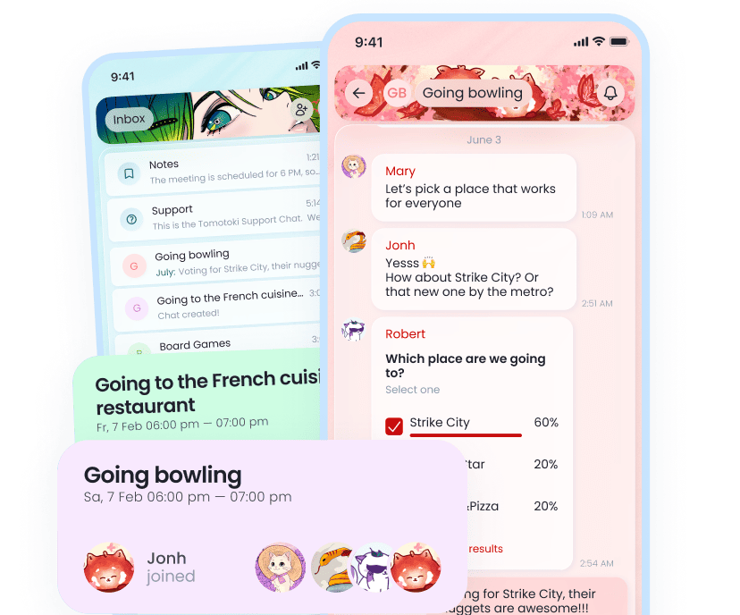 Create events with friends, chat right inside each one, and use groups, filters, and a shared calendar to keep everyone in sync