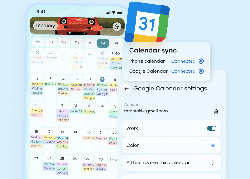 Integration with Google Calendar and your phone's calendar